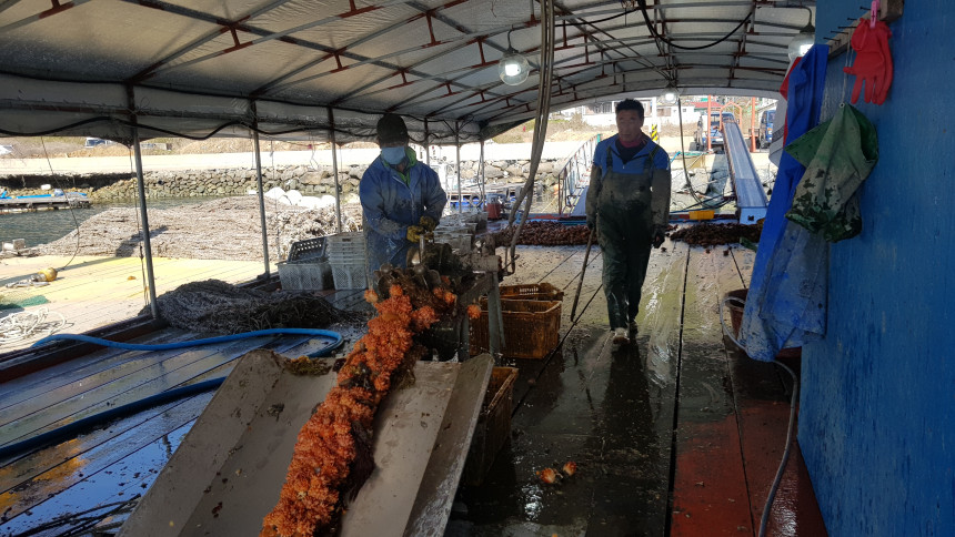 매일 조업하며 멍게를